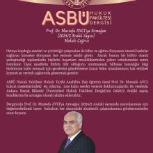 Ankara Sosyal Bilimler Üniversitesi Hukuk Fakültesi Dergisi'nin (2024/2 Aralık) sayısı, mesleki hayatları boyunca nitelikli ilmi çalışmaları ve müstesna hocalığı ile ülkemiz hukukçularının yetişmesinde emekleri olan Prof. Dr. Mustafa Avcı'ya, yetiştirdiği hukukçuların şükran borcunun küçük bir karşılığı olarak armağan edilecektir.
